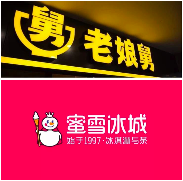 同理,老娘舅的新logo——一个大“碗”装着一个大“舅”字,还有海底捞的大红“Hi”,以及蜜雪冰城的“雪人”…….
