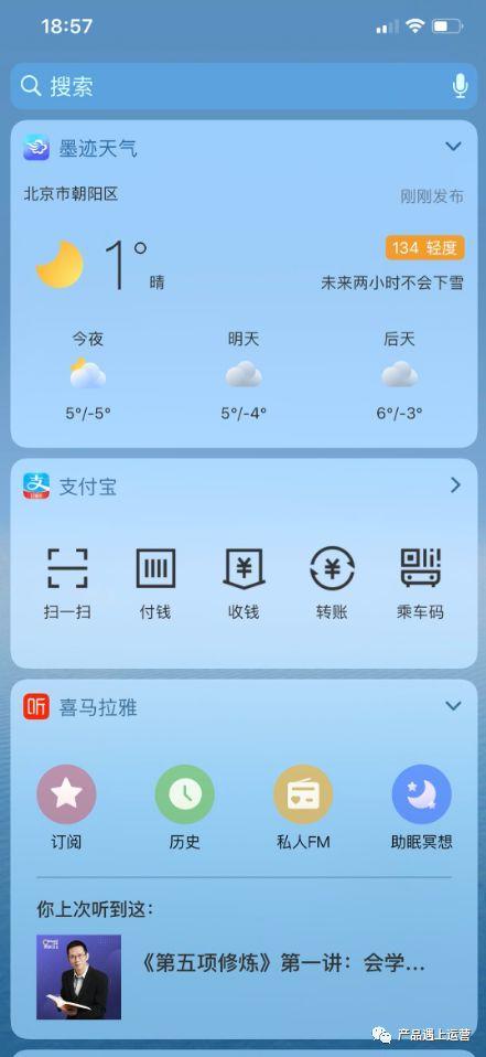 从手机第一屏向右划,进入的第一屏左侧页面即为负一屏,在这里可以放置组件,指向应用内功能。
