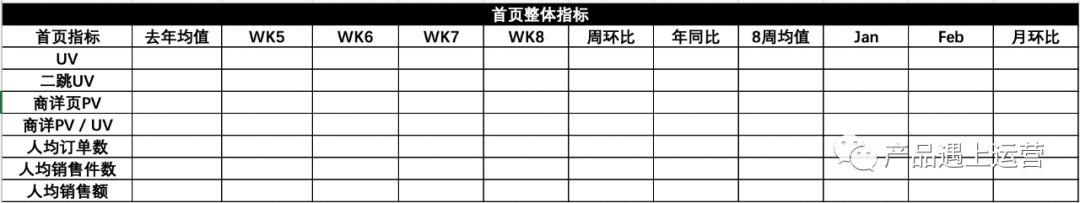 注:这三个指标中,前两个主要衡量首页的营收占比和直接贡献,第三个主要衡量首页引导成交的效率。对于大型电商或业务比较丰富的公司,首页的主要使命不是直接完成销售,但对于店铺首页或小企业,首页直接成交可以作为一个重要指标。