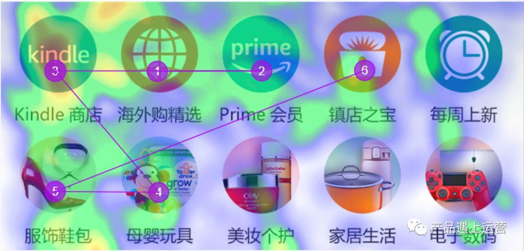 大家都还记得,网页的视觉热力图测试体现用户更多注意力集中在屏幕左边,尤其是左上角。PC时代,根据这个原则,一般会把最重要的信息和入口放在屏幕左上角。移动端我们再次验证视觉热力图,结果与PC时代十分接近,如下图。