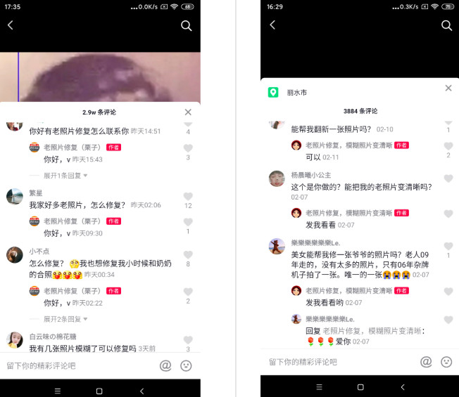 只要老照片修的好,完播率、评论、点赞、私信自然也少不了。