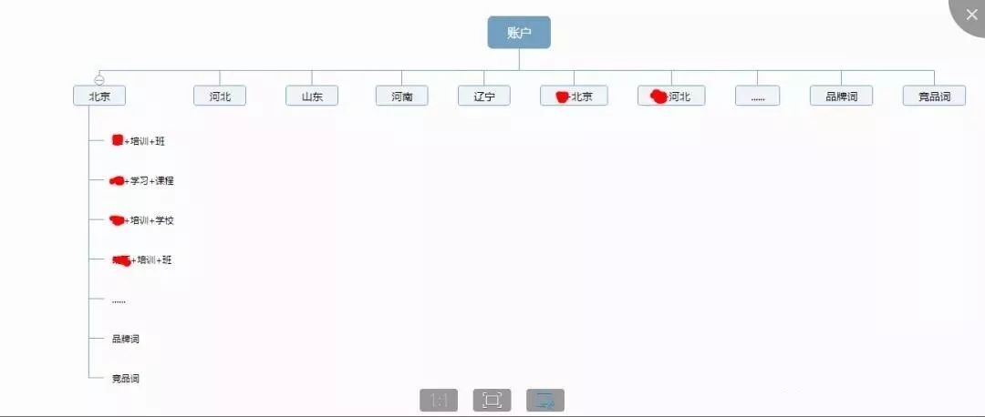 思路:在原有主账户基础上去除重复关键词作为基础关键词物料,选词-筛词-分词-加词—创意—URL分配(统一参数跟踪)—出价—匹配模式—预算—时段