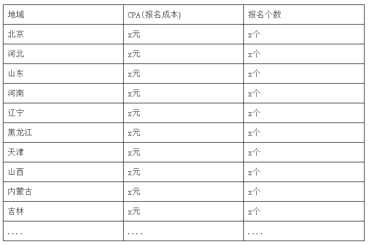 a)最直接目标是增加各校区报名数量(转化量),降低各校区报名成本(CPA)