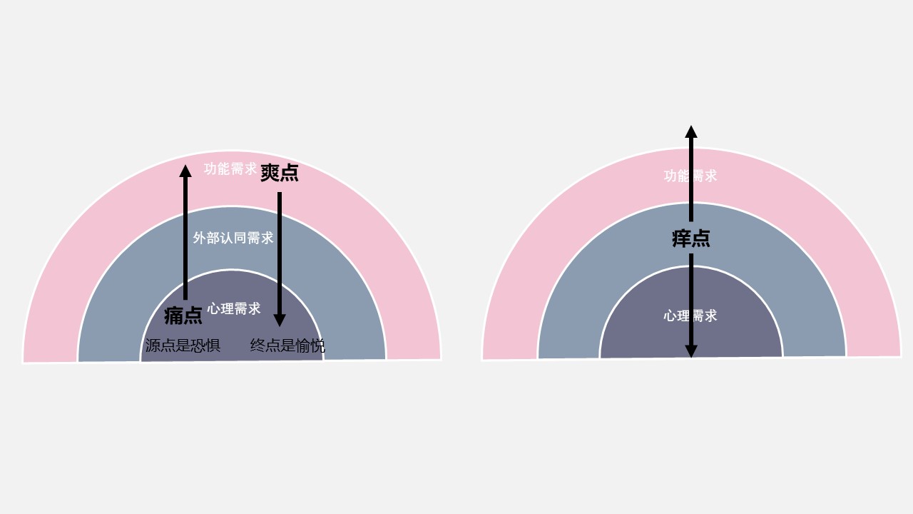 痛点的出发源点是心理需求中的恐惧,但并不是说仅仅抓住恐惧这个点就够了。如果是做一个产品,还要注意维护用户的社会角色和控制外部影响,还要有对应的可感知的功能来匹配恐惧的消解过程。所以我觉得痛点是从恐惧出发,穿过外部认同和功能需求。