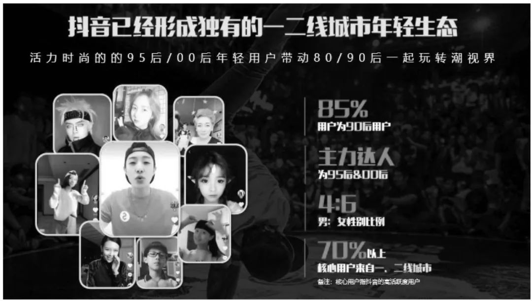 抖音最开始的目标用户群体是以一二线城市的90后、95后大学生和初入社会的年轻人为主,他们追求个性,标新立异,喜欢表达。同时,他们生活在节奏快,时间碎片化的时代,很多时候精神都处于紧绷状态,需要得到有效的释放和缓解。在这一群人有一个特点,不管在什么场景,地铁、公交、走路,大部分人都戴着耳机,音乐是他们生活的必需品。