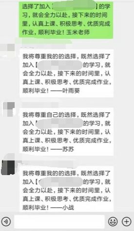 群内宣誓的目的,增加了仪式感,同时,也给学员自己一定的压力感,更加提高学员听课学习的积极性。