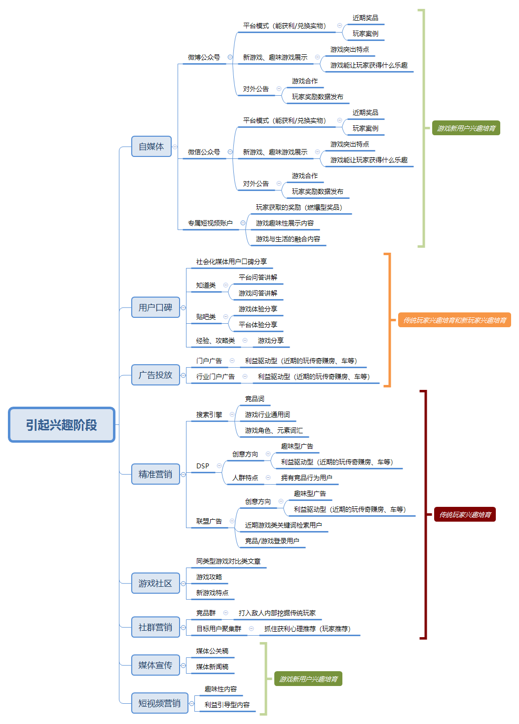 驱动游戏目标用户行为各阶段的营销渠道的规划和创意规划