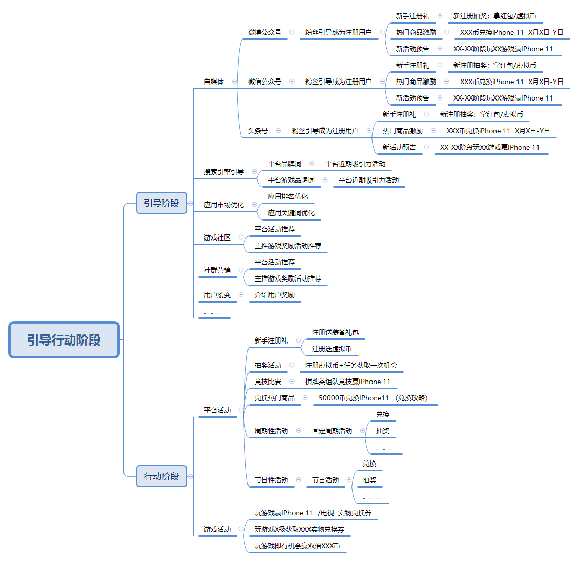- 用户引导阶段:主要是用户会在哪些渠道找我们,我们就在哪些渠道进行有效布局,同时借助平台活动策划吸引用户进一步行动。