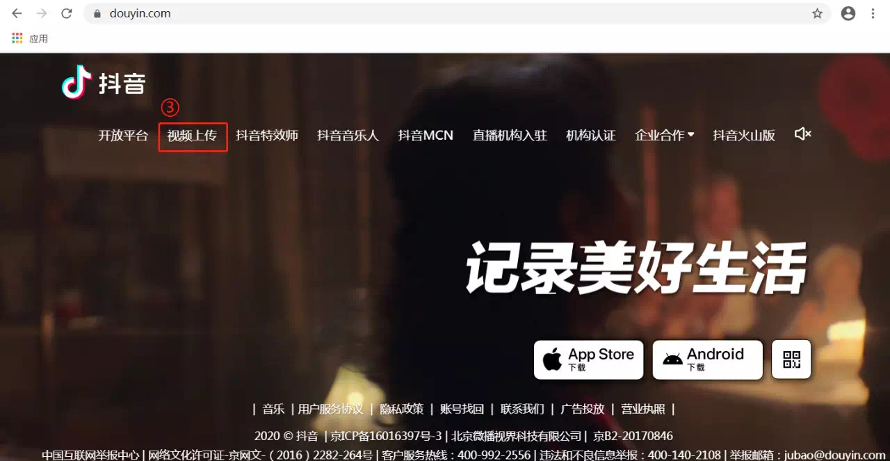 ③打开douyin.com,顶部有个“视频上传”,在这里上传视频不会被压缩。