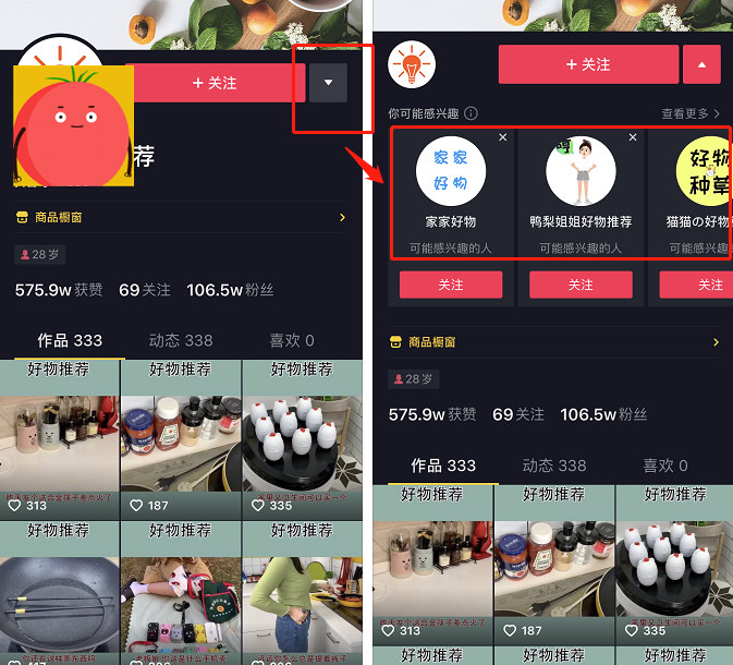 用别人的账号打开我们的主页➡️点击头像旁边的倒三角➡️那些可能感兴趣的人的标签,就是你的标签了(如果都是通讯录好友或者可能感兴趣的人,证明你的账号没有被打上标签)。