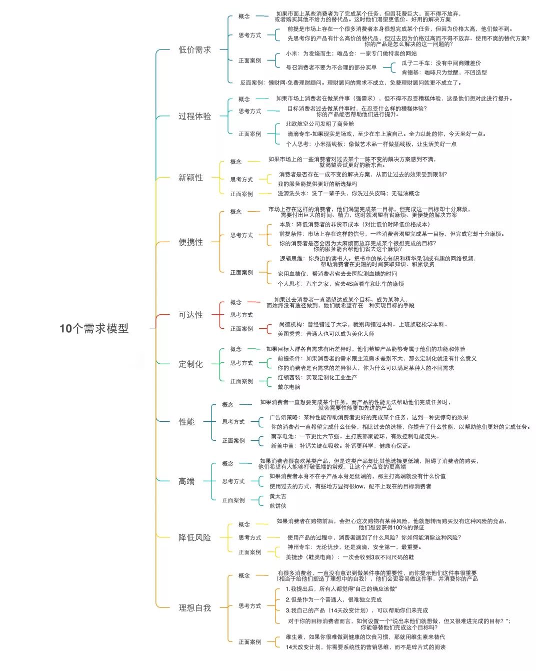 这10种基本上涵盖了产品对消费者所主打的全部需求。另外大家要明确的是,模板的意义在于梳理和引导思考,而不是设置框架,局限思维。