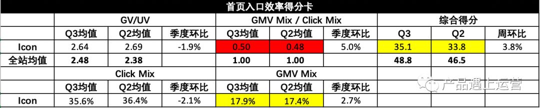 Icon区指标数据(示例数据仅反映全部icon总体情况,大家实践中应当深入分析每个icon的表现)