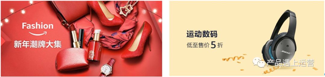 2)多商品 vs. 少商品如果无法对入口图片做个性化,例如,上个临时的活动,来不及做自动化抠图,只能用静态活动图片作为入口。那么,入口图片上陈列的商品比较丰富,在CTR上会好过单一的商品。比如下面两个活动入口图,左边这个商品丰富的图片,点击率就会比右边这个要高很多。