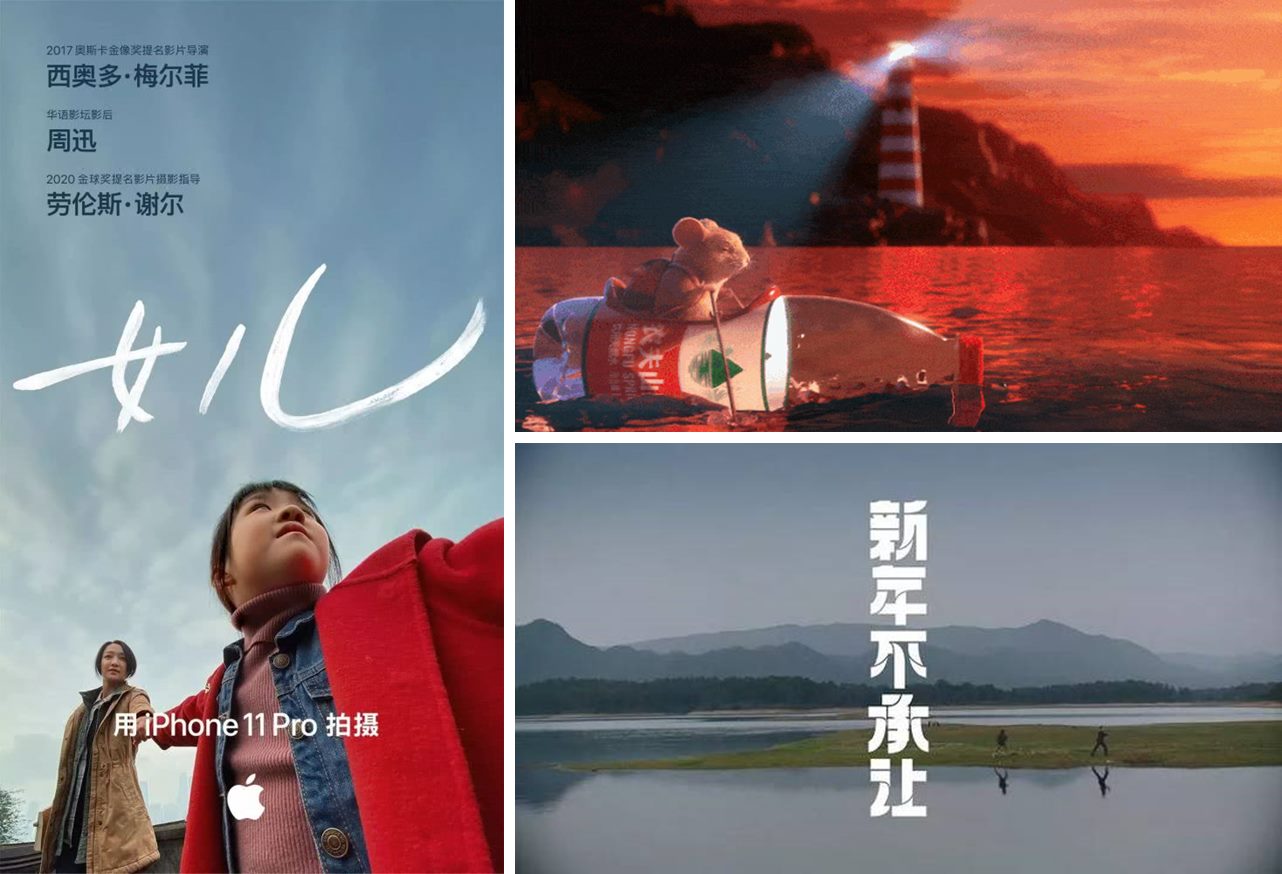 2020春节广告举例(左为苹果广告,右上为农夫山泉广告,右下为耐克广告)