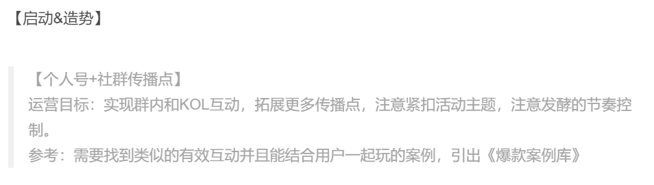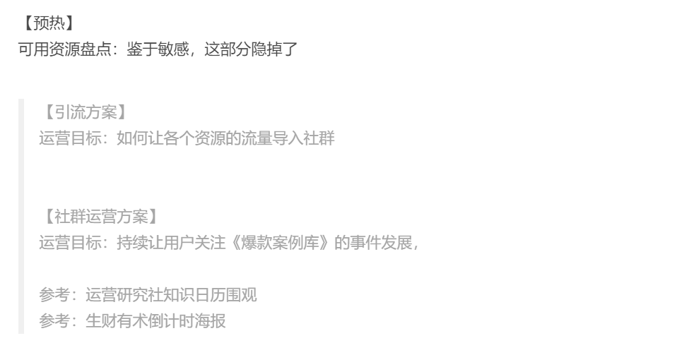 第一步:需要激活星球、社群、以及我们能触达的流量,并将他们汇入我们能进行运营的社群,持续运营,并促进《爆款案例库》话题发酵。(互动玩法,需要紧扣爆款案例库,让用户的注意力留在社群内,持续关注)