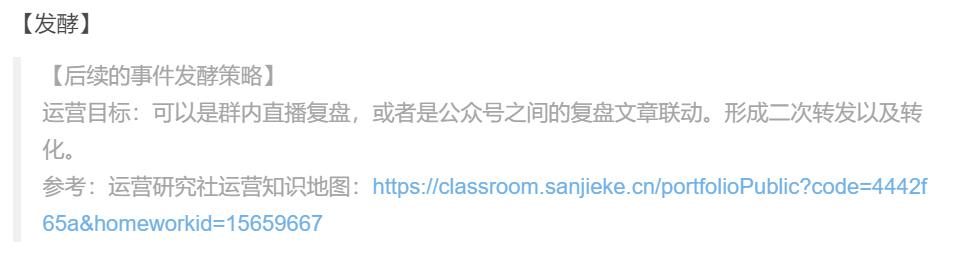 发酵:直播复盘?or各个推广资源进行整合发复盘文章进行用户沉淀(获取新用户及二次转化)