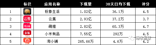 我整理了一组社交电商领域APP下载量的数据: