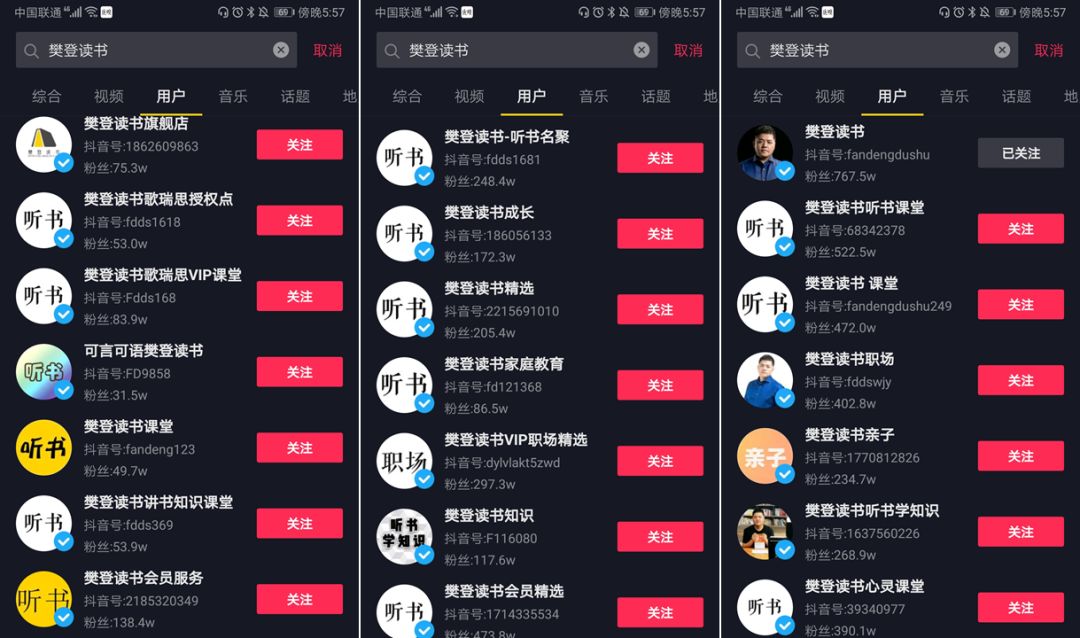 是的,不要怀疑,这些都是「樊登读书」抖音矩阵下的“官方马甲”。