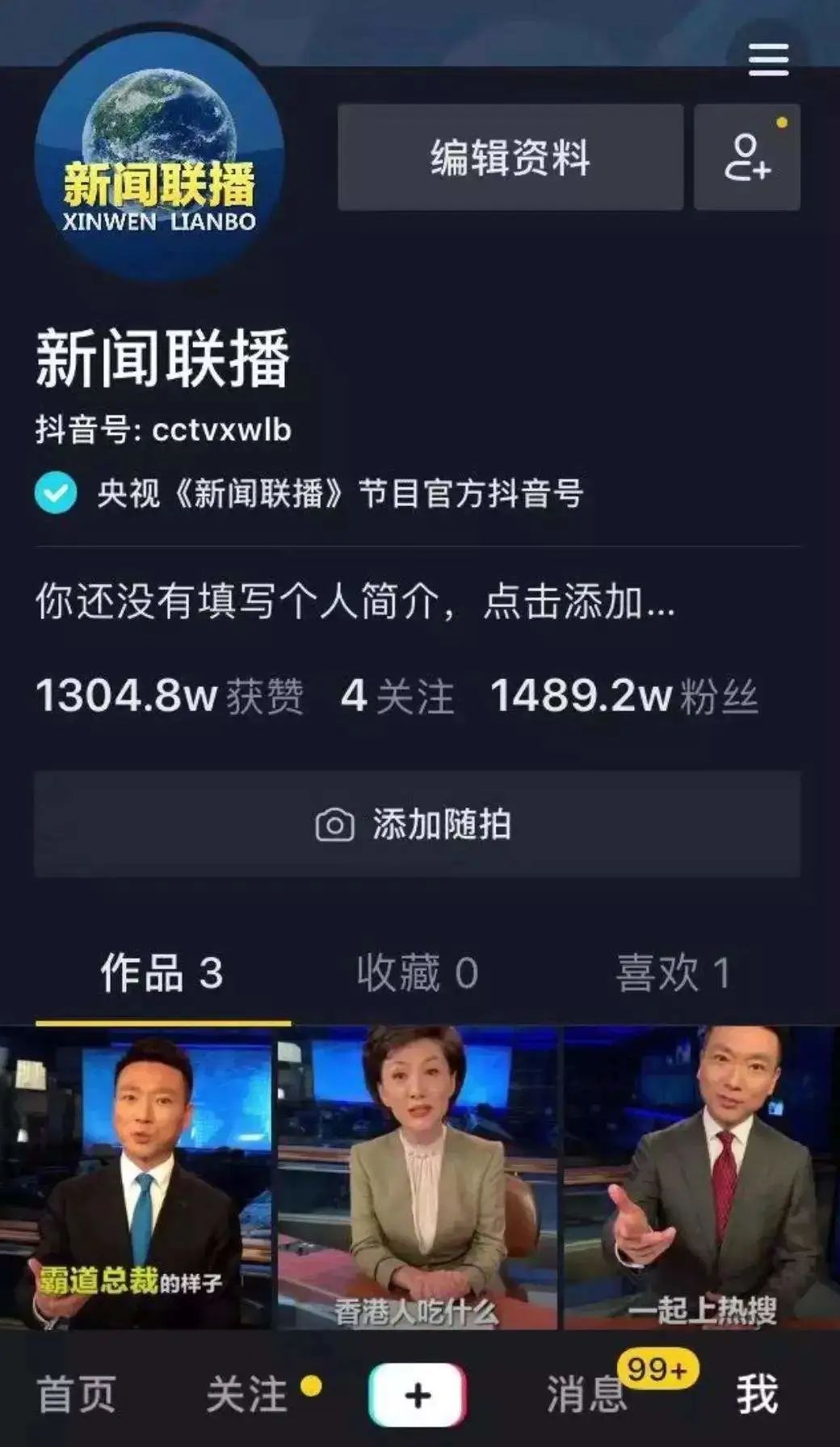 不仅是个人品牌与企业品牌,政治、经济领域的官方也在努力适应“小屏时代”,外交部发言人办公室的抖音官方账号,用以发布时事外交新闻,新闻联播与央视网也同样在各大平台建立官方账号,实时向大众传递官方讯息,央视不再只是之前严肃、高不可攀、官方信息传播者的形象,而是多了“人情味”,它是关注每一个人的内心世界的、关注每一个人的日常生活的。