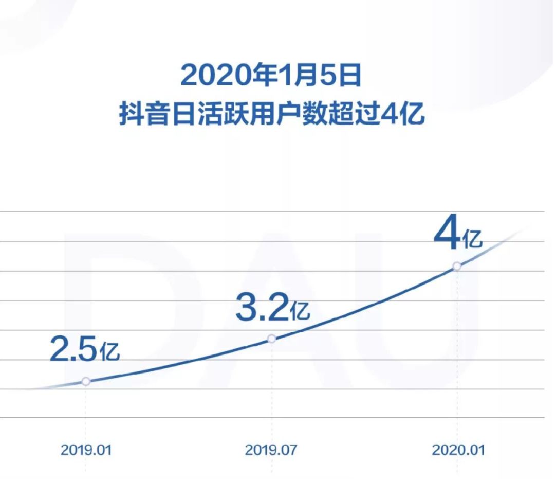 抖音发布的《2019抖音数据报告》显示:截至2020年1月5日,抖音日活跃用户数已经突破4亿。抖音CEO张楠表示,4亿是一个新的开始,抖音会继续努力做好记录和分享,让更多人看见更大的世界,也让更多人被更大的世界看见,真正成为“视频版的百科全书”。这样的数据说明在抖音这一单个平台在这样的形势下获得了更多的流量增长,同时可以推理出所带来的经济效益、内容产出效率也会有更多的增长。