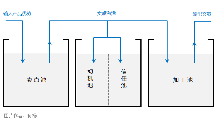 按照先后顺序:卖点池,激活池,加工池。然后激活池中又包含两个小池子,分别是:动机池和信任池;