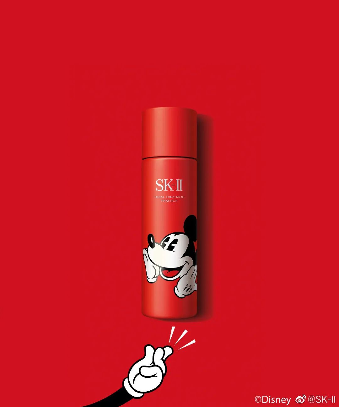 就在2019年年底,SK-II为了迎接鼠年,就与迪士尼经典IP米老鼠进行跨界合作,推出米老鼠限量版神仙水,带给用户新年好运。