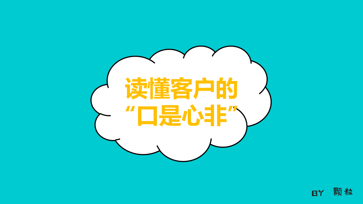 我们不要相信客户真的可以一次性讲清Ta的真正需求,Ta有时只能讲出基本的需求,更多详细具体的内容需要靠我们去挖掘;还有时ta讲的需求跟实际的需求是不一样的,只是Ta的表述让人产生误解……要想规避出现“口是心非”的情况,会有两种比较常用的方法: