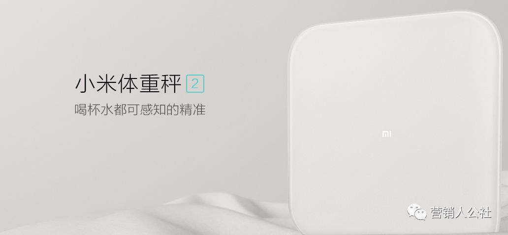 同样是小米的产品,我更喜欢小米体重秤的文案:“喝杯水都能感知的精准”。