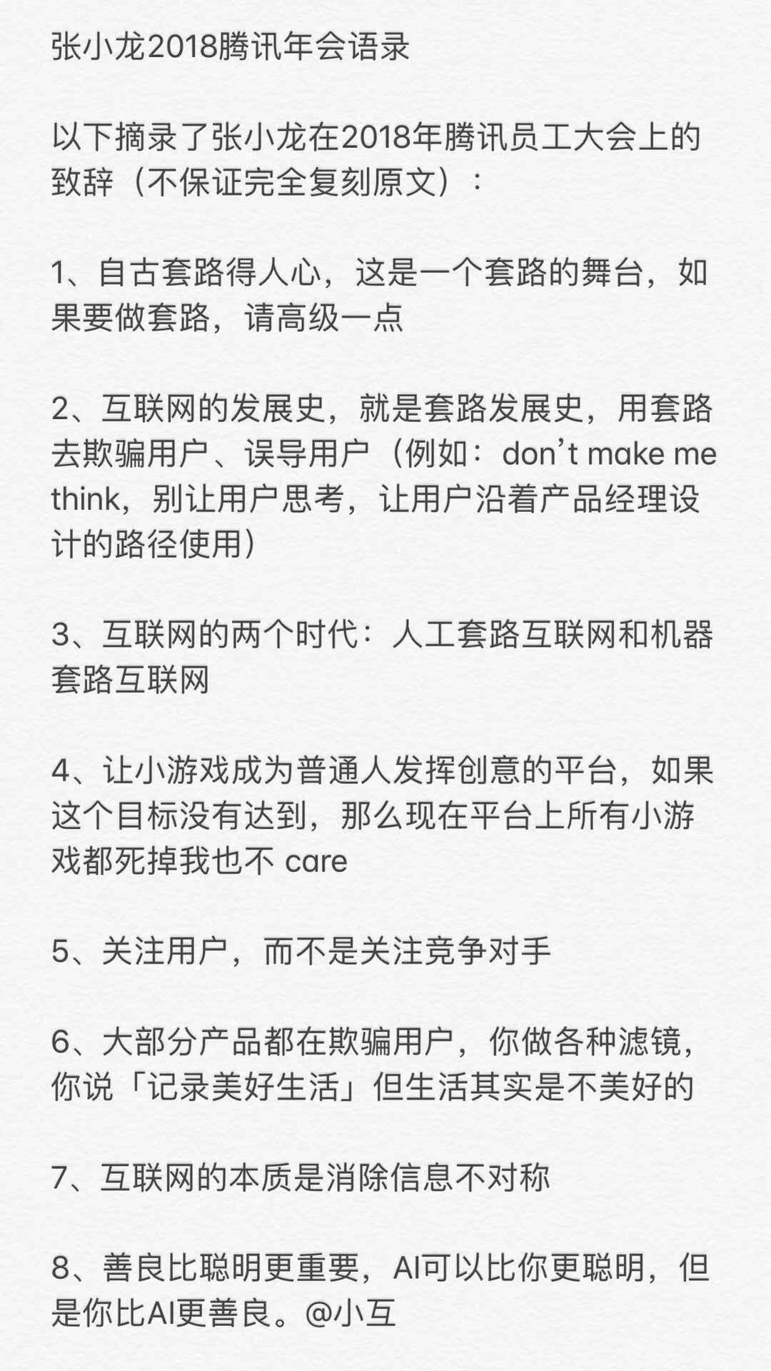 今天给你介绍的这本书,比较全面介绍了怎么提高演讲能力。希望你能尽快掌握演讲这个武器,帮你领先一步。前几天朋友圈被张小龙刷屏,第一时间就把他的语录收藏起来。这个创造中国最大社交软件的产品经理,平常十分低调,但这次的演讲语录,帮他迅速圈了很多粉。