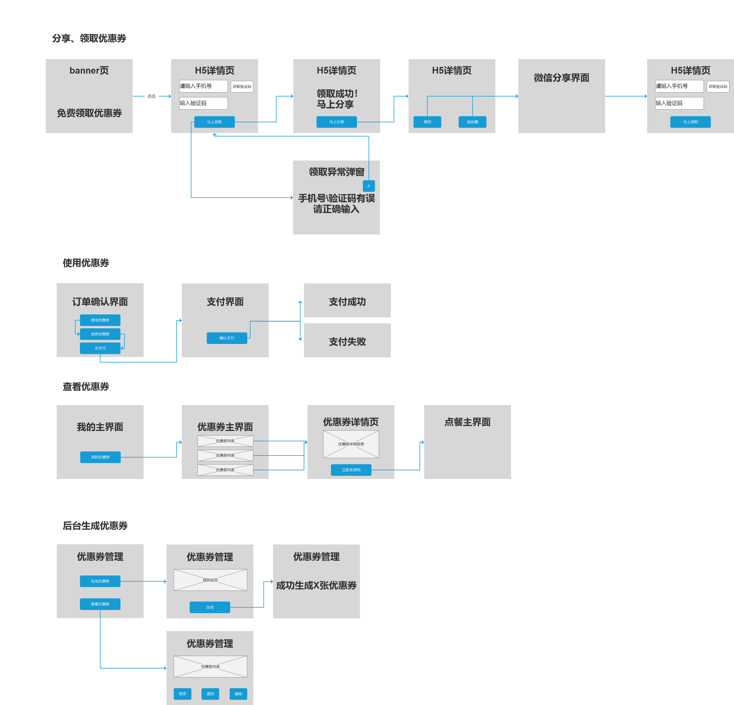 你是某餐饮类app的产品经理,由于公司推广需求,现在需要设计一个针对新老用户发送优惠券的H5界面,用于微信里用户自发的分享传播。