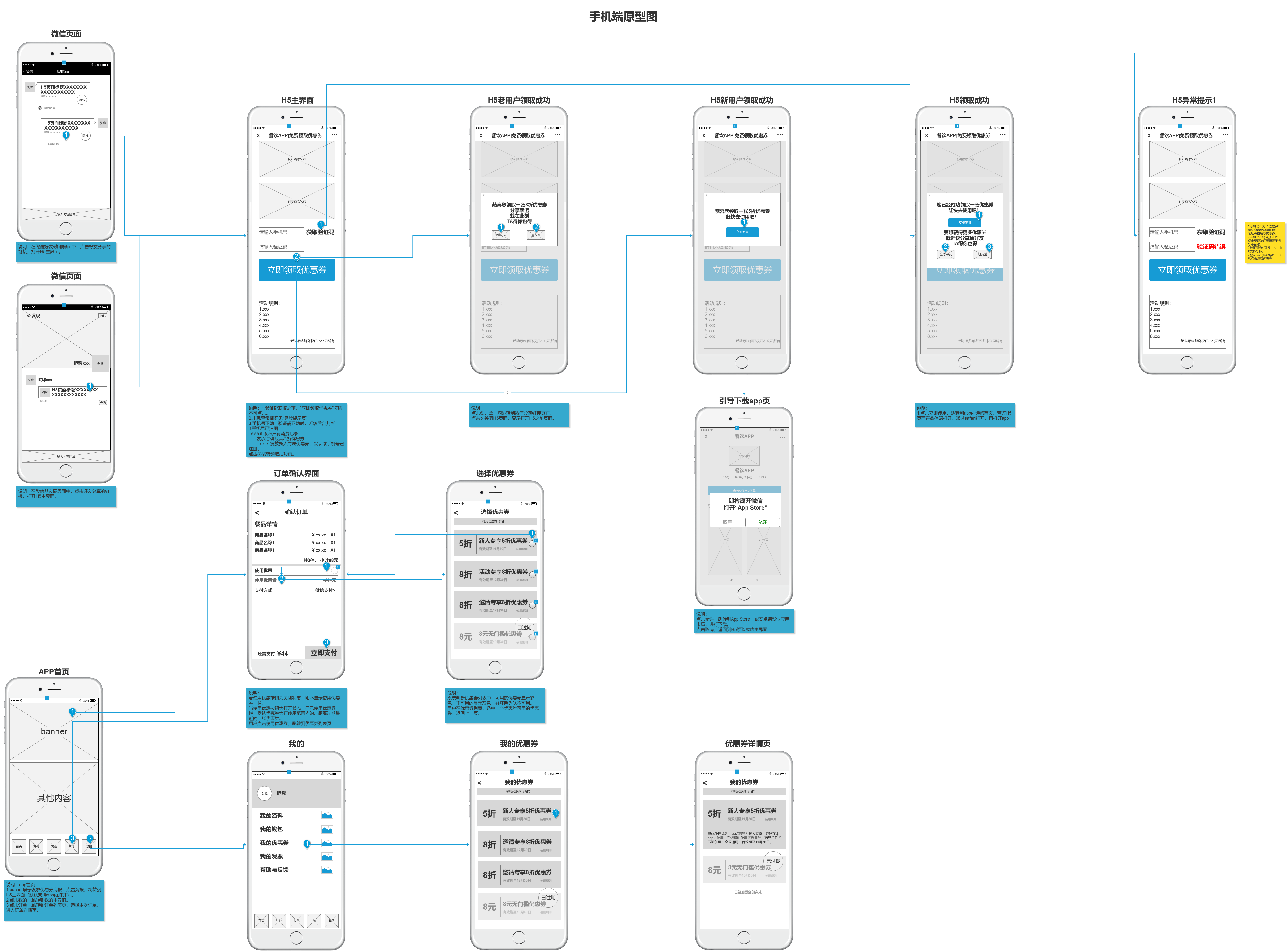 重要的页面需要完整原型,其他页面需要简单的页面流程,需要有整体的串联。