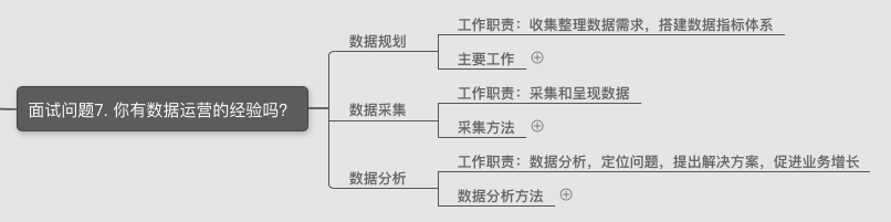 此时,面试官会围绕特定问题,问你的过往经历和解决方案,如果你的答案让他大受启发,判断你到岗就可以解决问题,你的offer就稳了。所以,你要针对每个关键运营节点:拉新、激活、留存/活跃、转化、裂变、数据,做好充足的准备,分别储备大量的解决方案,供与面试官探讨和借鉴。