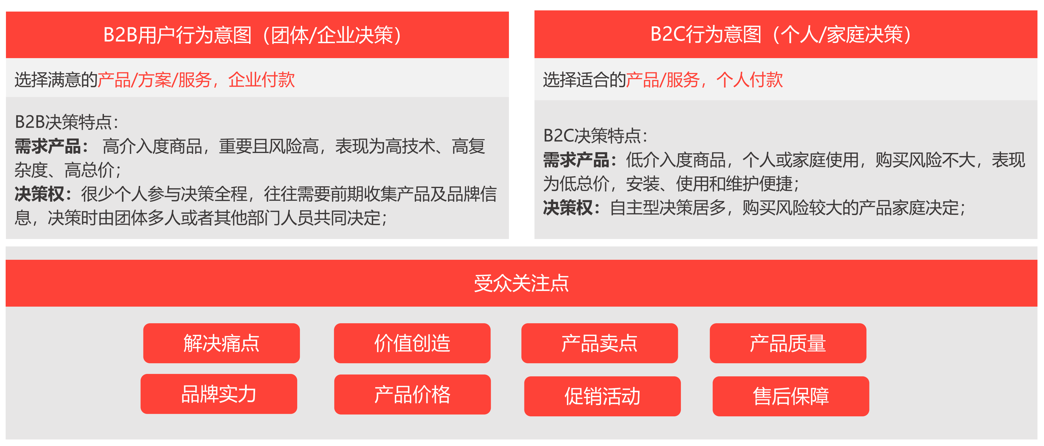 由于面向的用户不同,机械行业分为B2B和B2C两种不同的商业模式,这两种商业模式共同的目标都是进行产品的推销。但不同用户对产品的需求是不同的,例如: