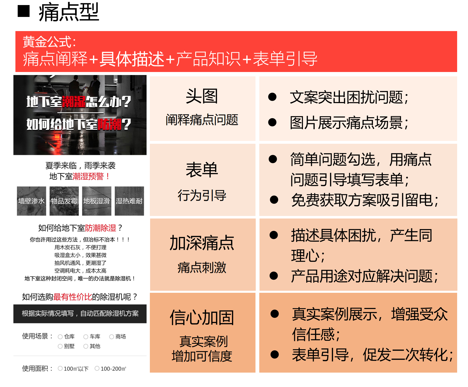 四种信息流营销页类型,利用黄金搭配公式解决三类人群的需求。
