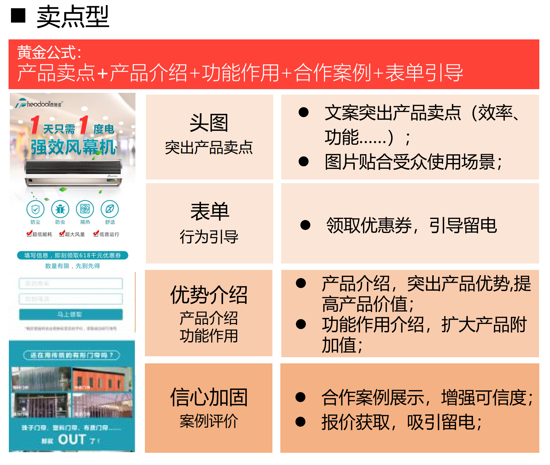 它的黄金公式为:产品卖点+产品介绍+功能作用+合作案例+表单引导。
