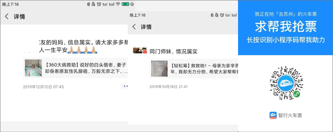 典型例子有:水滴筹求助、火车票加速、投票活动。