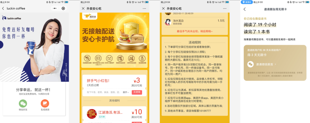 典型案例:瑞幸咖啡、美团红包、微信读书