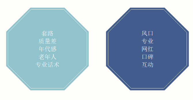 不用说,你也知道哪一组是电视购物的,哪一组是直播带货的。出现了一边倒的情况,人们普遍看好直播带货,表示认同和鼓励;而电视购物成为了“骗子”的代名词,消极,厌恶,不信任,采访中很多人表示亲戚朋友有被电视购物套路的情况。