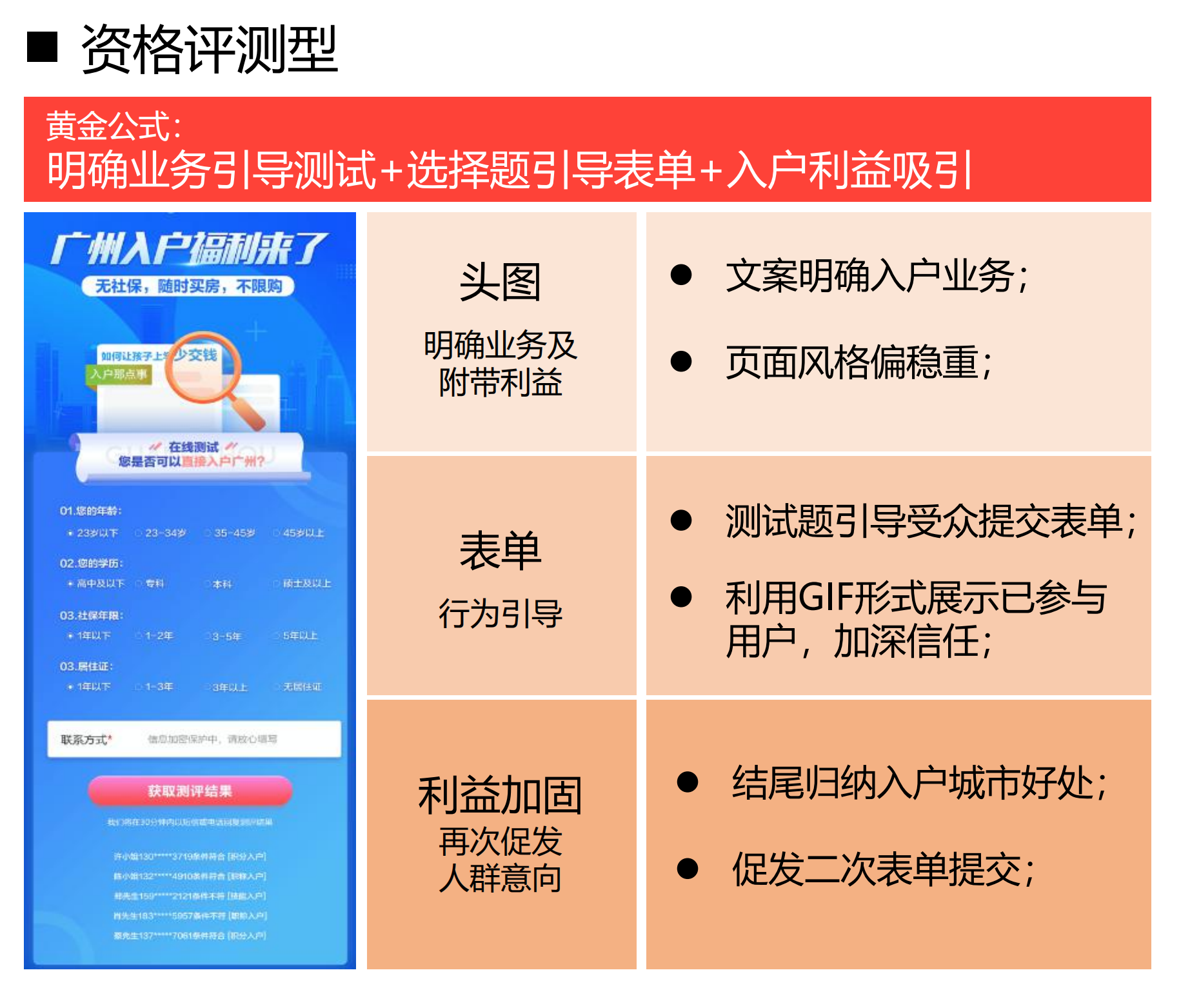 黄金公式:明确业务引导测试+选择题引导表单+入户利益吸引
