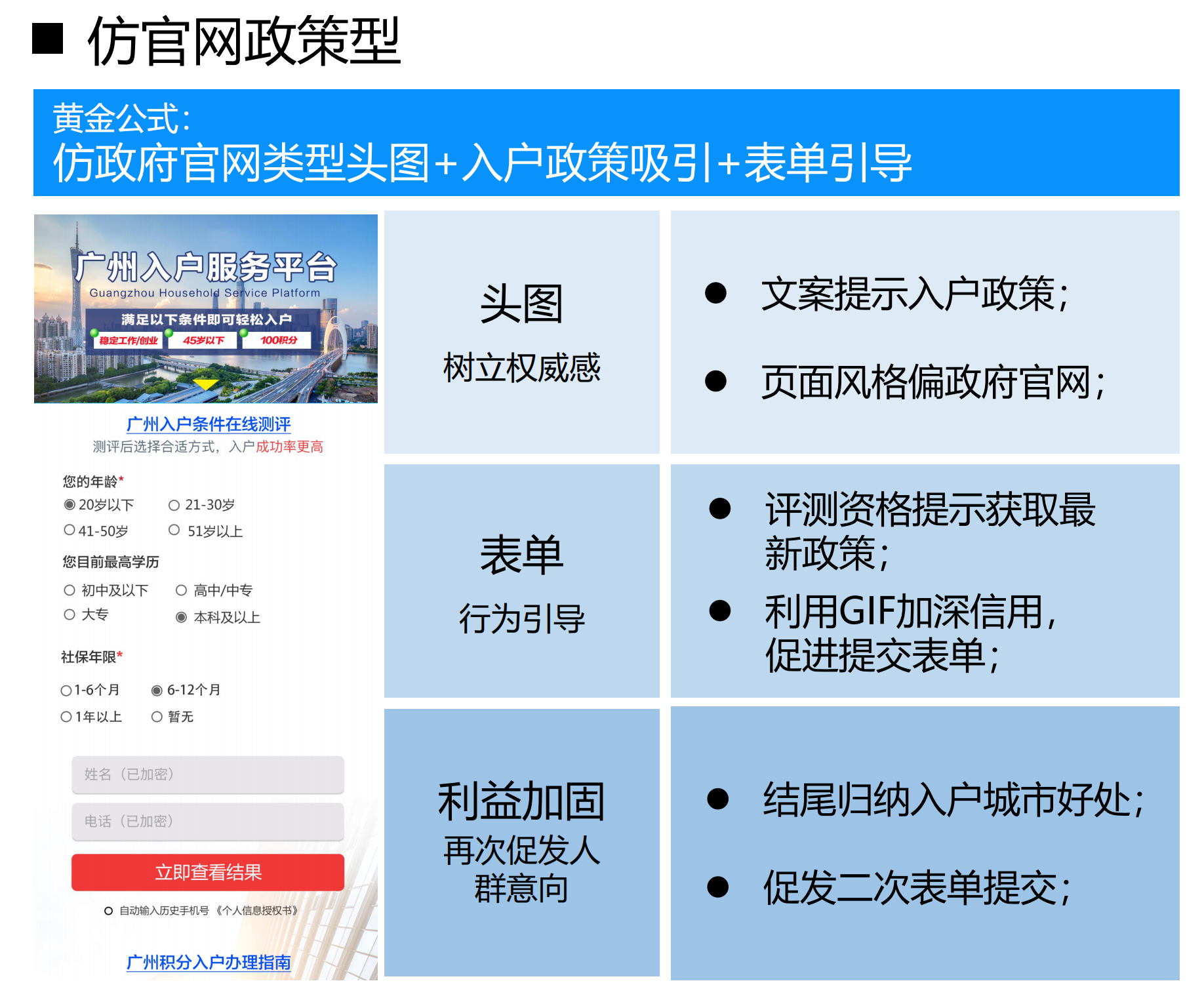 黄金公式:仿政府官网类型头图+入户政策吸引+表单引导