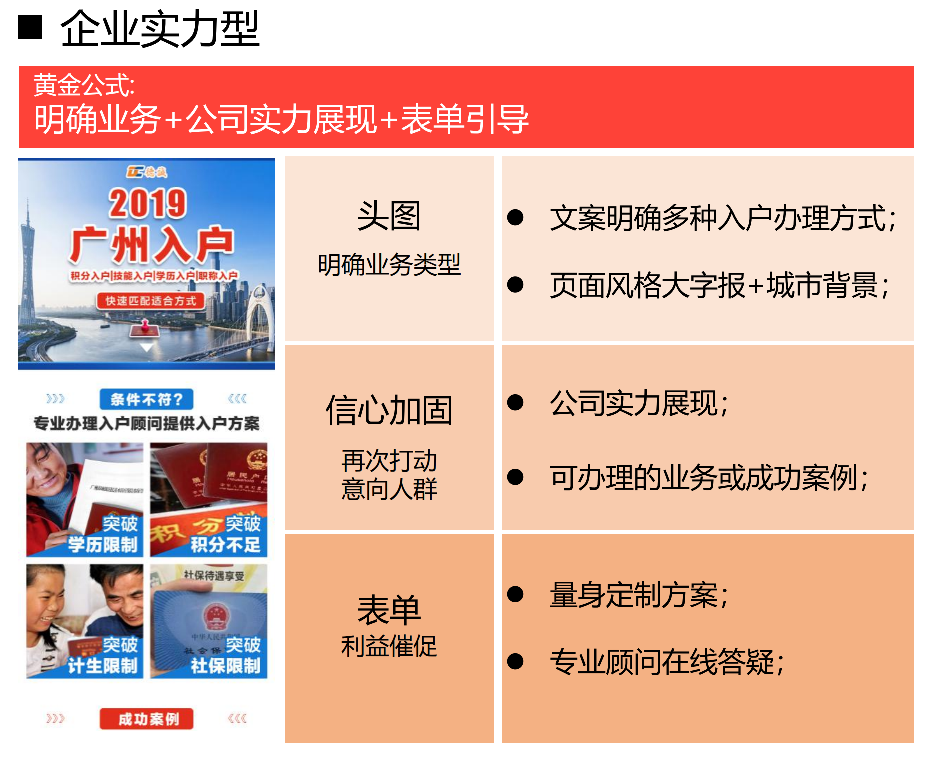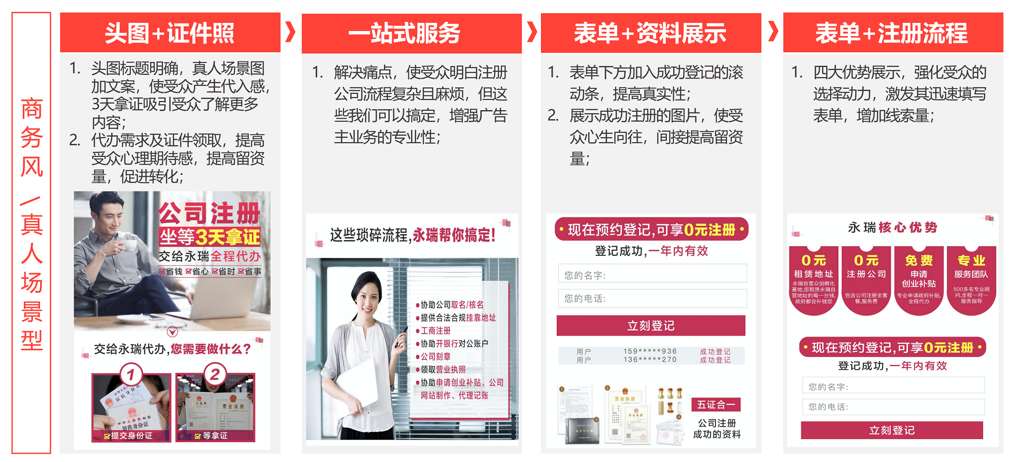 以上是本期给大家分享的 商务服务行业-入户代办/公司注册业务 落地页策划搭建指南,优化师投放参考。