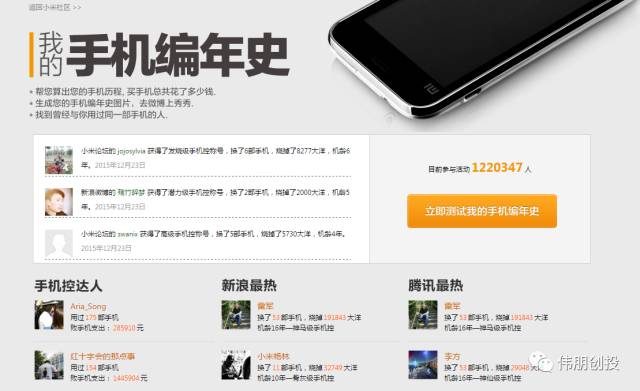 启动阶段的运营还可以推出足够有吸引力的、有参与感的活动,如小米2011.7月推出的“我的手机编年史”UGC活动: