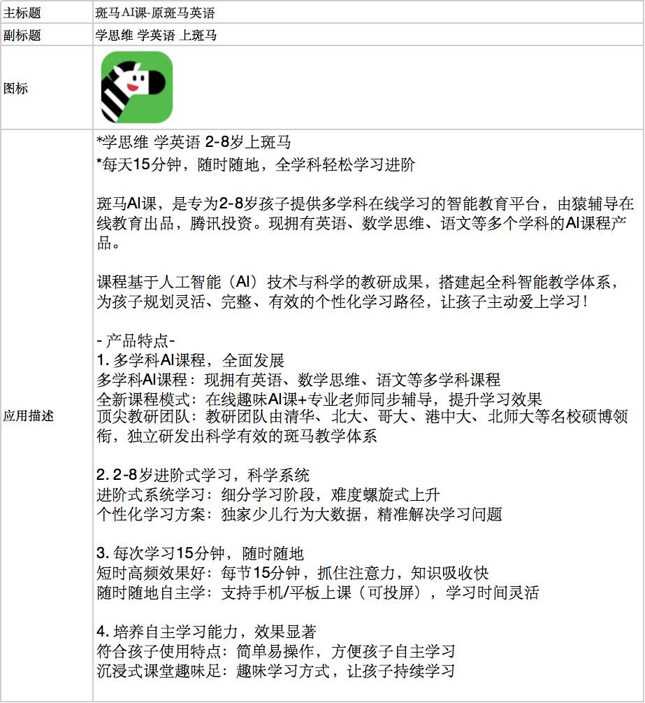 首先,在ASO优化上,斑马是做的比较好的。从上线至今,有3次登上过app store的推荐位,推荐位是用户打开app store后最先看到的页面,基础流量相当大,展示的是在从应用商店中万里挑一中选中的产品,只有体验好,下载量高,用户评价高的产品会被推荐,这为其在流量获取上发挥了重大作用。究其背后的原因,我觉得有以下几点是值得参考借鉴的;