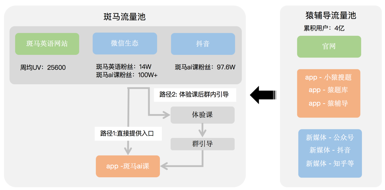 斑马ai课内部导流图示(数据来源:第三方平台预估)