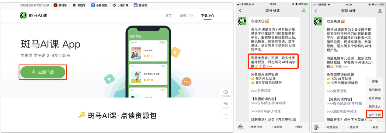 1)引导主动下载:用户主动或被动接触到斑马或猿辅导产品 ➡️ 在产品内有引导下载app链接