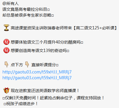 04.赠送高一全年课程:这个也是高途最爆炸的一个营销政策,报高二一科的课程,直接赠送高一一科的全年课程,包括全部资料和全年复习规划。也算是其他机构常做的买一年送一年,只不过高途取了一个巧,赠送去年的课程,就不会影响后面,续费高三的课程。