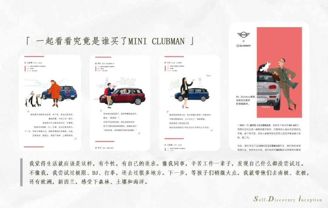 举一个简单例子来说,在汽车品牌MINI的“来看看究竟是谁买了MINI Clubman”当中,通过展现一系列车主有趣有料的生活方式,这支广告巧妙地用到了“他人之证”,并且这种方式,应该说要比那种“销量绕地球8圈”的简单粗暴方式更能取信于人。