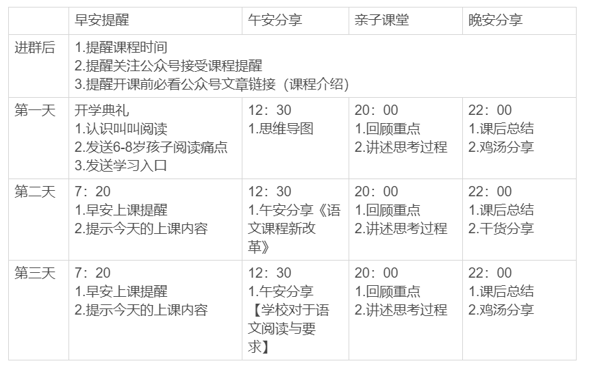 (1)需要思考如何在开课前让更多家长关注群,把上课相关信息尽可能多的触达家长;