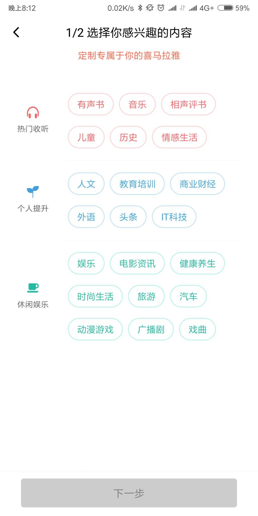 喜马拉雅的这个内容推荐将用户的需求场景进行了两个分类:将用户分为需要个人提升和休闲内容的类型进行定向的推荐选择,类似推荐算法中基于用户属性的推荐。同时还有热门分类这个维度来提高推荐的成功率。