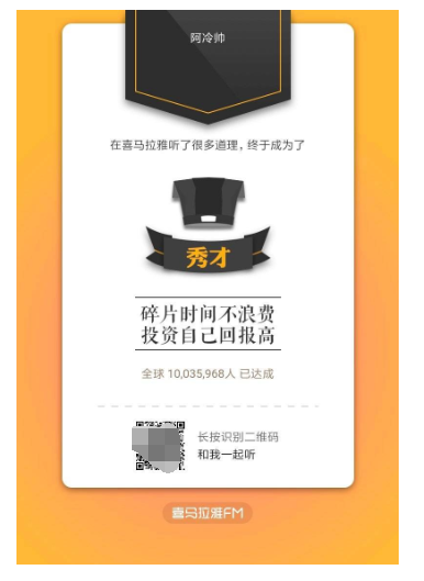 通过用户的活跃等级形成具有一定炫耀性质的海报图片,引导用户进行分享,在用户的关系链中进行转化获客。